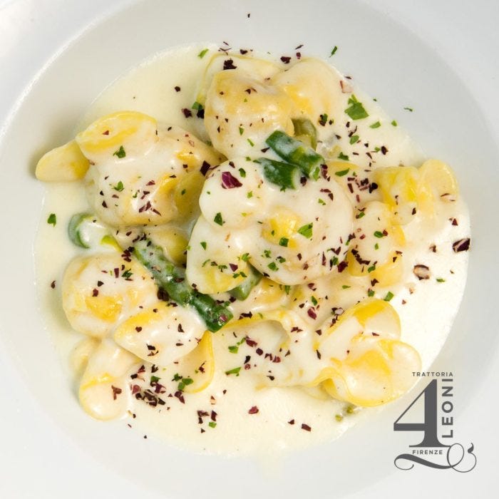 One item I saved is the menu from Trattoria 4 Leoni in Florence, Italy where I had one of the best meals I’ve ever eaten: fiocchetti di pera in salsa di taleggio e asparagi—pear and asparagus pasta.1 I’ve sent other friends and family there for the same dish and they all agree it is worth the trip across the Arno river. I’ve tried to recreate it myself and haven’t gotten it right yet…and that’s okay. Preferable, even, as it can keep its superlative rating in my memory.